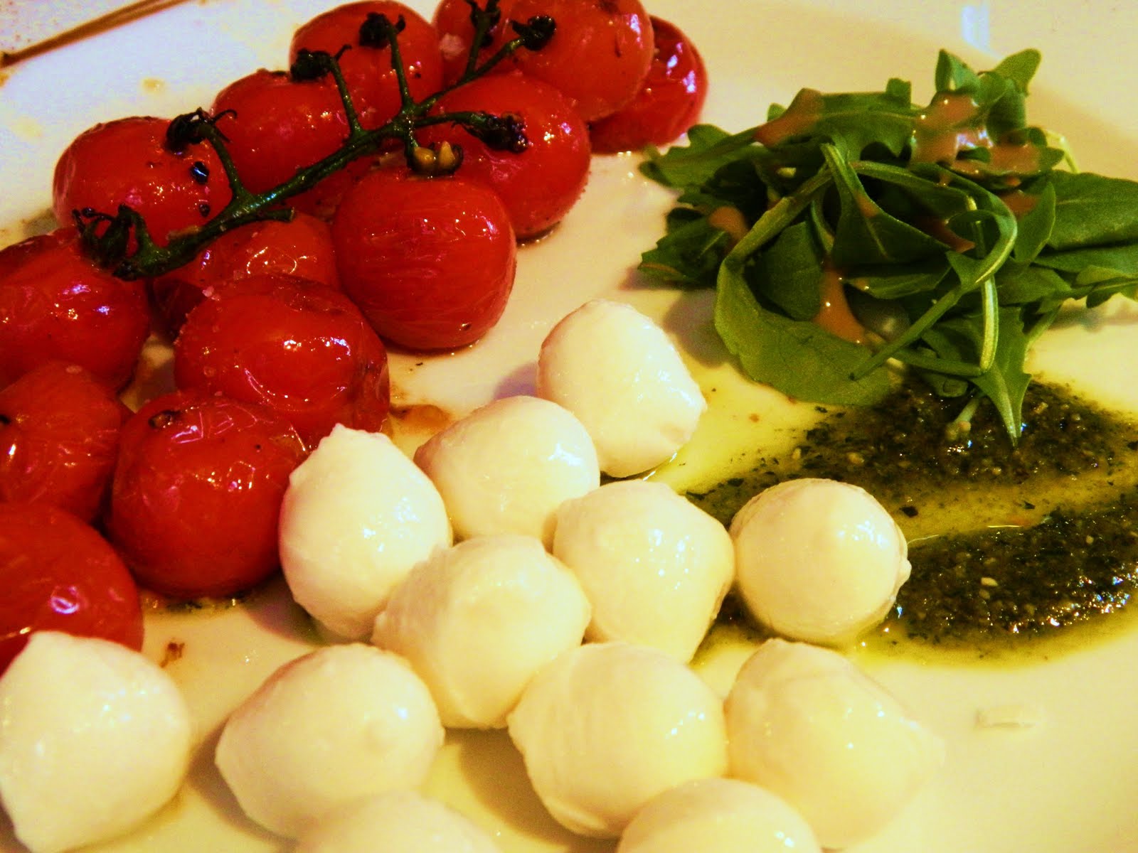 The entrée was a light salad of herb-infused, roasted cherry tomatoes, very fresh mozzarella, and lightly dressed baby arugula, with some pesto on the dish. If the [doubtfully-human] restaurateur had brought out just the tomatoes, I swear I would have given him the entire cost of the meal for them. Give me a pool of those, and I'll eat them in a minute! Oh! So good...